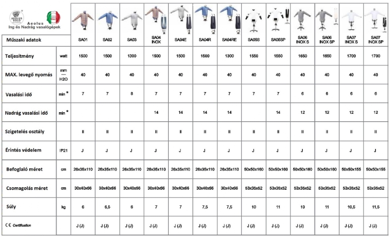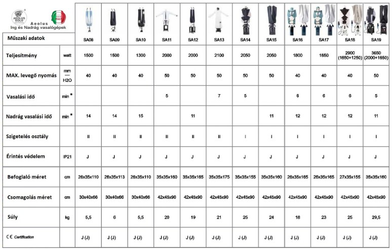 A vasalási idők eltérőek lehetnek a táblázatban szereplőktől: - függ a textíl vastagságától, - összetételétől, - nedvesség tartalmától.